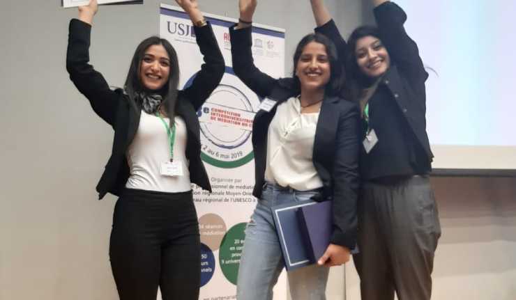 فازت الطالبات في الجامعة اللبنانية (نيللي عقيقي وجنى باسيل وألوندرا فغالي - كلية الصحة العامة – الفرع الثاني - سنة ثالثة قسم العلوم التمريضية)، بالمرتبة الأولى، في المباراة التي نظمتها الوكالة الجامعية للفرنكوفونية AUF ومنظمة اليونيسكو UNESCO بالتعاون مع المركز المهني للوساطة في جامعة القديس يوسف CPM – USJ والمنظمة الألمانية GIZ ، حول موضوع الوساطة كوسيلة لحلّ النزاعات.