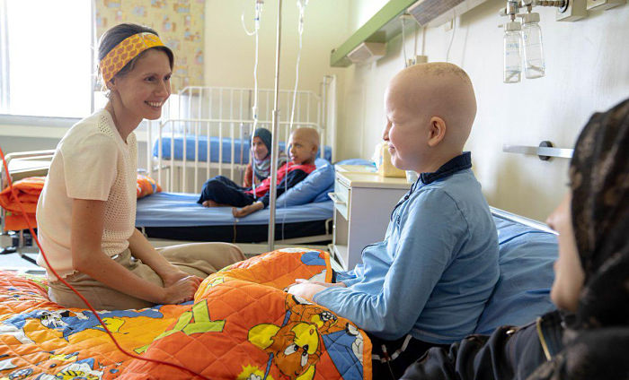 نشر الحساب الرسمي لرئاسة الجمهورية السورية عبر "تويتر"، صوراً للسيدة الأولى أسماء الأسد، خلال زيارتها أطفال جمعية "بسمة" المعنية بالأطفال المصابين بالسرطان، وذلك لمعايدتهم والإطمئنان عليهم، بحضور المشرفين والكادر الطبي في الجمعية، بمقرها في منطقة حرستا.