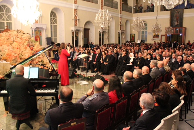 ثم قدمت نعمة يرافقها الموسيقي جورج قسيس عزفا على البيانو، باقة من الأغنيات والأناشيد الميلادية، تخللتها كلمة قالت فيها: "اليوم نصلي من أجل السلام والأمان ونحمل بصوتنا، صوت كل انسان معذب ومتألم وصوت شرقنا الموجوع وكل الأصوات الداعية للسلام على أمل ان يعم السلام العالم".