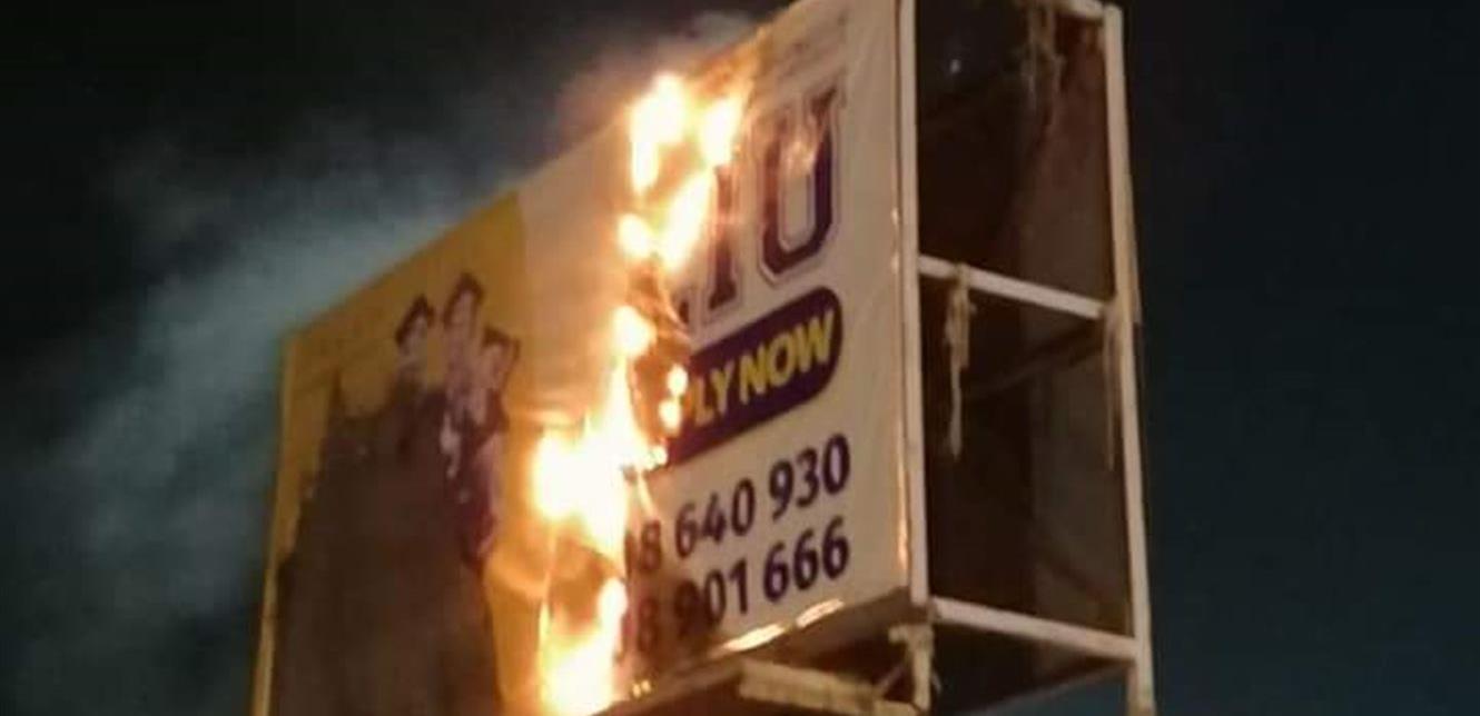 أقدم مجهولون على إحراق لوحة إعلانية كبيرة تابعة لـ"الجامعة اللبنانية الدولية" (LIU) في منطقة مرج برالياس – زحلة.