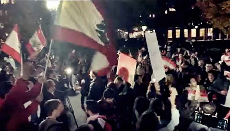 في تحرك جديد قامت به الجالية اللبنانية في نيويورك دعماً للمتظاهرين في لبنان، تجمع مساء اليوم (الخميس) حشد كبير من أبناء الجالية اللبنانية في "واشنطن سكوير بارك" في مانهاتن مؤكدين على دعمهم الكامل لمطالب المتظاهرين في مختلف المناطق اللبنانية لليوم الثامن على التوالي.