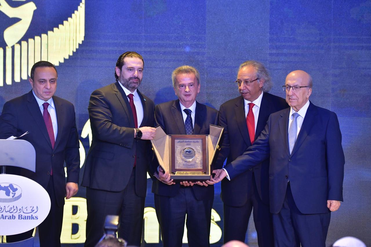 أفتتح رئيس مجلس الوزراء سعد الحريري عصر اليوم، "المؤتمر المصرفي العربي لعام 2019 تحت عنوان "الاصلاحات الاقتصادية والحوكمة"، في فندق "فينيسيا"، بدعوة من اتحاد المصارف العربية، مصرف لبنان وجمعية مصارف لبنان، وتخلله تقديم جائزة "محافظ العام 2019" لحاكم مصرف لبنان رياض سلامة.