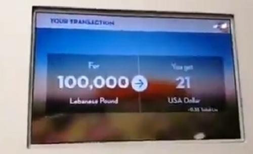 إنتشر فيديو عبر مواقع التواصل الاجتماعي من مطار إسطنبول حيث يظهر على آلة للصيرفة 21 دولارا بـ100 الف ليرة لبنانية، أي ما يعادل 5000 ليرة مقابل الدولار الواحد.