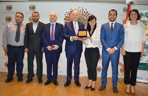 وفي الختام ، قدمت درعاً تقديرية للرئيس دبوسي على إحتضانه وإستضافته للمشروع الإبتكاري الإجتماعي المشغل/ وحفل توزيع الدروع التقديرية وشهادات مشاركة وجوائز نقدية على الفرق العشر الأوائل كما حصل فريقين على فرصة للمشاركة في دورة تدريبية في إيطاليا لتنمية مشاريعهم .
