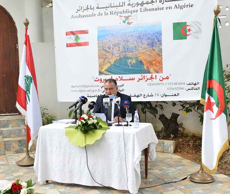 بداية، تقدم حسن "بأحر التعازي وصادق المواساة إلى الأسر المنكوبة وإلى جميع أهلنا في لبنان الحبيب"، ناقلا "نيابة عن حكومة وشعب لبنان، أسمى عبارات الشكر والعرفان والإمتنان للجزائر الشقيقة، حكومة وشعبا، على ما جادت به أياديهم الكريمة بالخير وأنفسهم العظيمة بالعطاء تضامنا مع لبنان إثر الفاجعة التي ألمت به، حيث كانت الجزائر وكما عهدناها في طليعة الدول التي وقفت بجانب لبنان في محنته".
