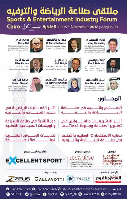 هاني المسيري العضو المنتدب لشركة كرافت هاينز ، ومحافظ الاسكندرية الاسبق ، والسيد فرانك نابلسي نائب الرئيس الإقليمي المدير العام لفندق فيرمونت النيل في القاهرة ومنذر الانصاري مستشار وعضو مجموعة خبراء منظمة الأمم المتحدة ، و الايطالي ستيفانو لابورتا المحامي لدى مكتب جالافوتي بيرناردي المتخصص في الترفيه ،و السيد نك هيج الرئيس التنفيذي لمجموعة زيوس سبورتس للتسويق،وستتحدث د.نوف الغامدي المؤسس والمدير التنفيذي لمجموعة chief outsiders consulting عن الموارد البشرية في صناعة الرياضة والترفية ، ويشارك بالمنتدي ايضاً خبير إدارة منشآت وفعاليات رياضية والرئيس التنفيذي لشركة سبورتس الدولية السيد رومي غاي وكذلك السيد مايك فرنان الرئيس التنفيذي لشركة ريد سترايك