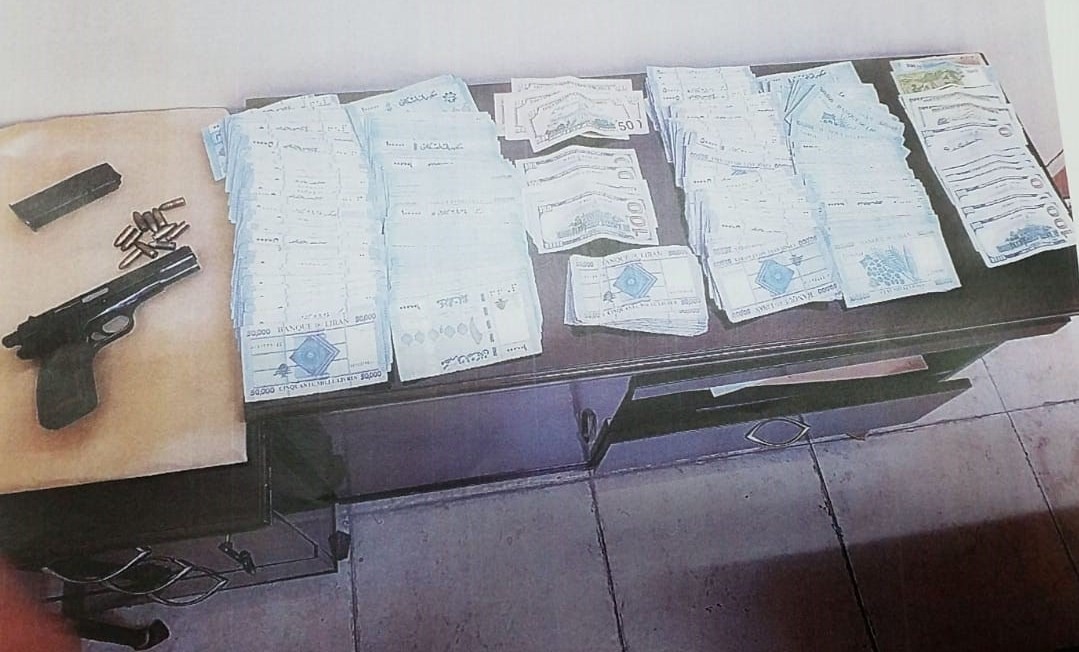 بتفتيش منزله عثر بداخله على مبلغ 35 مليون ل.ل. و 280$ ومسدس حربي نوع هريستال.