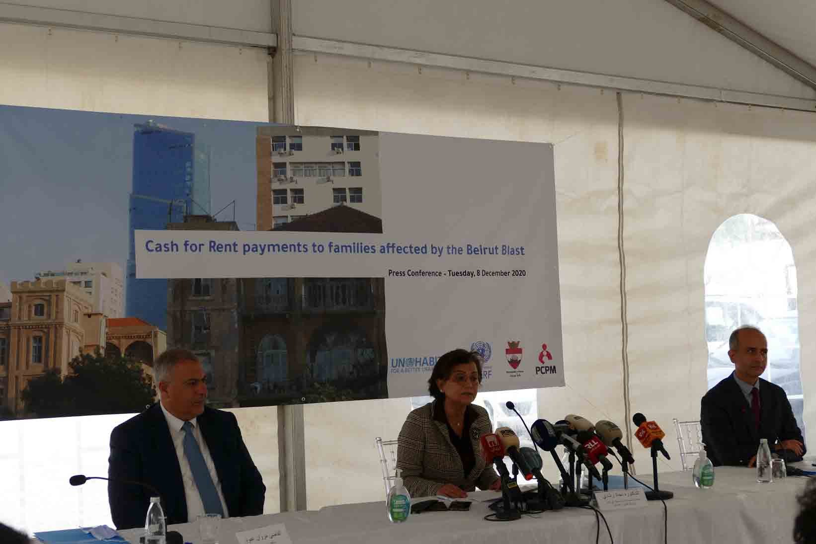 أعلن برنامج موئل الأمم المتحدة UN-Habitat تقديم مساعدات نقدية لايواء 800 أسرة مهمشة تضررت جراء انفجار مرفأ بيروت، خلال مؤتمر صحافي في مرأب مصلحة سكك الحديد والنقل المشترك في مار مخايل - بيروت، بحضور سفير جمهورية بولندا في لبنان برزيميسلاف نيسيووفسكي وأعضاء من المجلس البلدي في بيروت وممثلي وكالات الأمم المتحدة وبرنامج موئل الأمم المتحدة والجمعية البولندية للمساعدات الدولية.