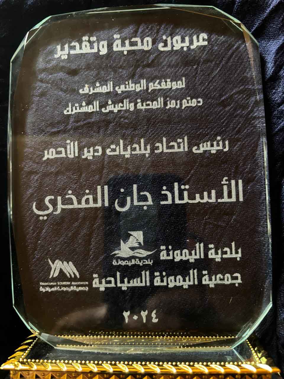 بمبادرة من رئيس بلدية اليمونة الأستاذ طلال شريف وجمعية اليمونة السياحية تم تكريم سبادة المطران حنا رحمة رئيس اتحاد بلديات دير الأحمر المحامي جان فخري ورئيس بلدية دير الأحمر الأستاذ لطيف القزح في دارة مطرانية بعلبك دير الأحمر المارونية