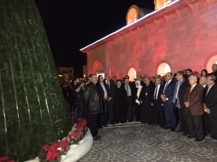 بعد ذلك توجه الحاضرون الى باحة الكنيسة واضاءوا شجرة الميلاد على وقع المفرقعات والأسهم النارية