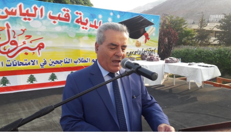 وهنأ أهالي البلدة بنتائج أبنائهم في الشهادات الرسمية، كما هنأ اللبنانيين بتعيين ابن قب الياس العميد مروان سليلاتي قائدا للدرك، "لما يتميز به سليلاتي من مناقبية عالية". كما أثنى على دور الكوادر التعليمية في المدراس الرسمية والخاصة، اذ "وصلت نسبة النجاح في قب الياس الى حدود المئة بالمئة".