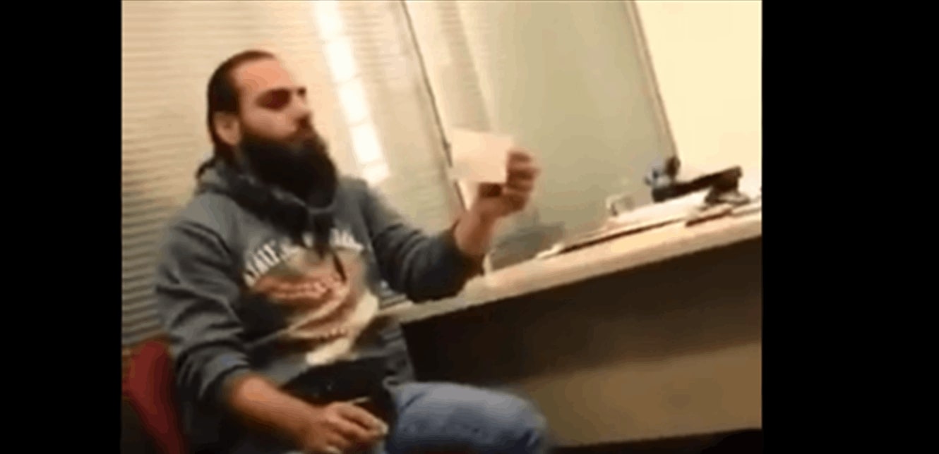 وفي الفيديو، يرفض العميل مغادرة المصرف قبل استلام المبلغ ويهدد بإحراق المصرف وسط رفض الموظفين صرف الشيك بالدولار.