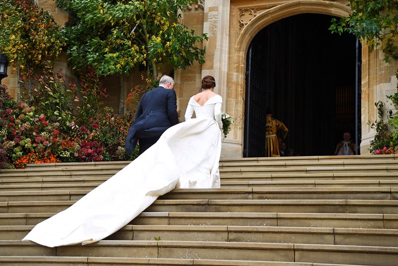 وقال قصر بكنغهام في بيان: "الظهر المكشوف للفستان كان طلبا خاصا من الأميرة يوجيني التي خضعت لجراحة وهي في سن الـ12 لتصحيح انحراف في العمود الفقري".