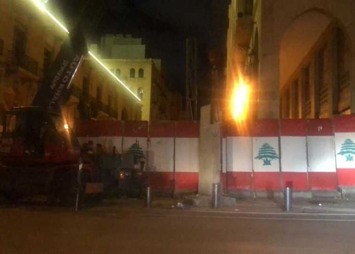 وافيد بأن القوى الامنية أغلقت المدخل الرئيسي لساحة النجمة بشكل كامل بجدار إسمنتي ضخم