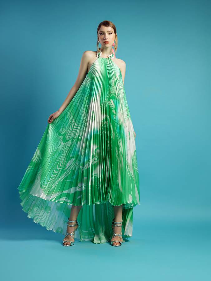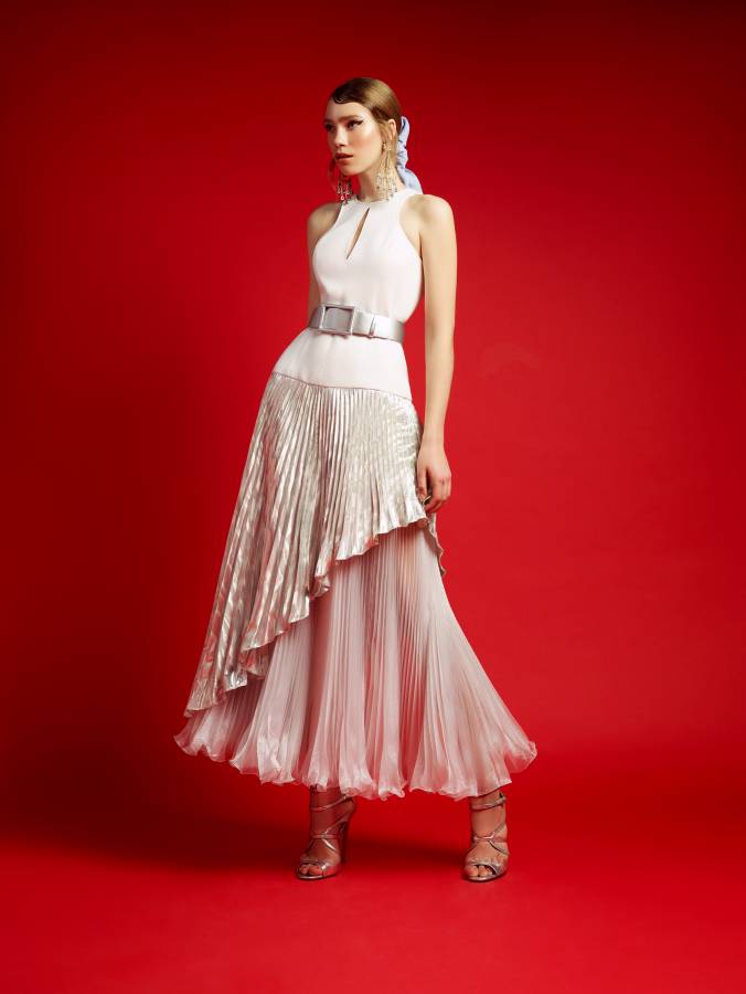 يتعانق القماش والقصّات والألوان كسمفونية راقية ليشكلوا مجموعة مذهلة للمبدع العالمي جورج شقرا لربيع وصيف 2018 للألبسة الجاهزة، القصات ناعمة رقيقة تعبّر عن المرأة المليئة بالأنوثة والإثارة في نفس الوقت. وكما عهدنا طريقة عمل هذا المبدع حيث يلجأ دائماً الى ابتكار قصّات تتناغم مع جمالية القماش والموديل لتكامل الصورة بشكل رقيق وجذّاب. استعمل جورج شقرا أنواع أقمشة عديدة ليعبر عن فرح الربيع والصيف، أبرزها قماش الحرير والكريب والترتر والساتان. القصات تمحورت حول السراويل الواسعة والفساتين المزيّنة بالثنيات الرفيعة والعريضة، والأكتاف العارية المشبوكة بحمالة مطرّزة على العنق إضافة الى الفساتين المزيّنة بالطيّات مع عقدة على الكتف، ناهيك بالتفاصيل الدقيقة والناعمة كالفستان الأبيض المزيّن على الأكتاف والتنورة بكشاكش ناعمة مع حزام عريض أبيض، أمّا الألوان فتمحورت حول الأبيض والأصفر والبرتقالي والأزرق والأخضر والزهري والأحمر، ألوان تحاكي جمال الربيع وفرح الصيف.