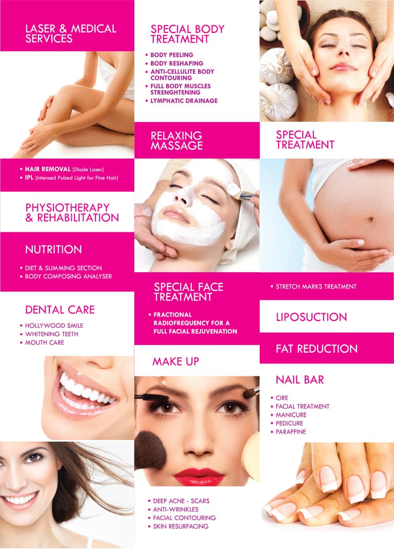 يتميز المركز بتقديم خدمات تتعلق بالتجميل الطبي والتجميل العادي. يضم فرع التجميل الطبي تقنبات إزالة الشعر بالليزر والتي تعتمد على الـ Fda Approved والتي تعتبر تقنية أميركية لها تصريح من مركز الجودة الأميركي بحيث تعتبر من أحدث التقنيات التي أثبتت فعاليتها في إزالة الشعر.