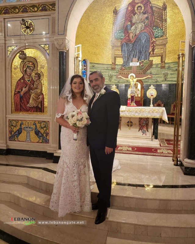 وكان الإشبين والد العريس، والإشبينة كانت شقيقة العروس نانسي فاكيوس، بحضور والدة العريس مارسيل ووالدة العروس باولا، والأهل والأصدقاء.