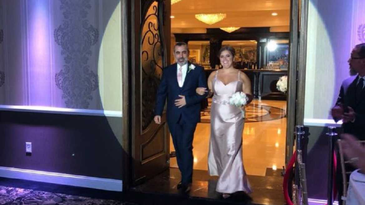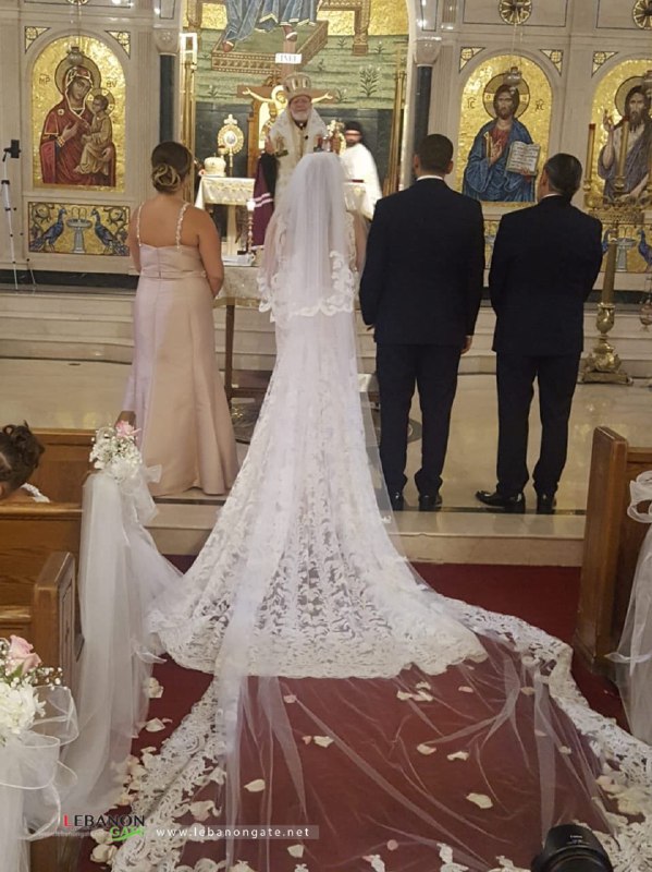 وتألقت العروس بفستان رائع من تصميم المبدع بسام نعمة، وهو الذي ألبس أشهر النجمات، كما وتلا الإكليل حفل عشاء مميز، وتم نقل مراسم الزفاف مباشرة عبر "يوتيوب" ليتمكن الأهل في لبنان من متابعة هذا الحدث.