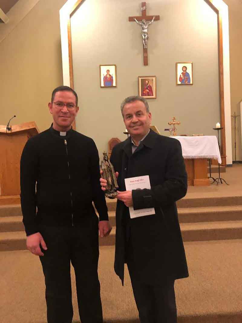 ثم قدم لدرغام تمثال السيدة العذراء "عربون وفاء وتقدير لجهوده في خدمة الكنيسة والوطن".