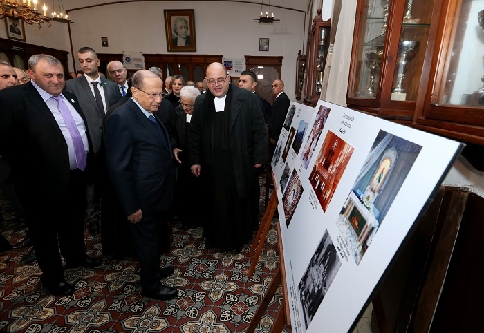 ثم جال رئيس الجمهورية والحضور في معرض للصور يحتوي على صور قديمة من ارشيف المدرسة منذ تأسيسها وحتى يومنا هذا.