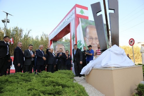 ثم دون كلمة في السجل الذهبي، وزرع شجرة أرز، قبل أن يزيح الستارة عن النصب التذكاري.