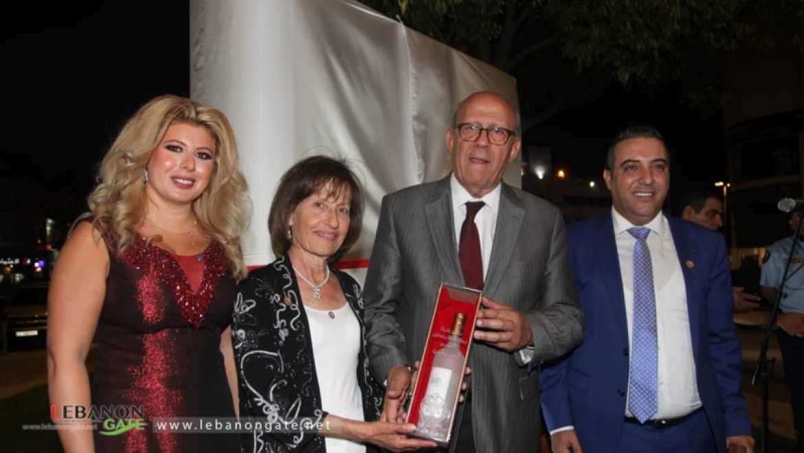 ليختتم الإحتفال قبل إزاحة الستار عن "المجسم الكتاب" وأخذ الصور التذكارية بدرع تكريمي مع هدية "قنينة عرق" تحمل إسمه على غلافها، قدمتهما روتاري لرئيس البلدية... الى درع تكريمي لسماحة.