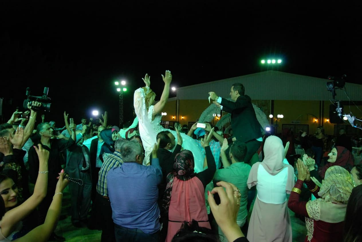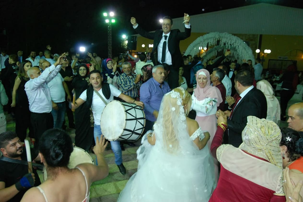 أحيا الحفل فنانين من سوريا ولبنان "علي حليحل، دريد عواضة، رضوان صادق، سهام الصافي، ندى حاطوم، أحمد زعيتر، حودي عواضة، علا أبو حمزة وزينب حمية" وقدم المحلل السياسي الأستاذ فيصل عبد الساتر وصلة عتابا محبة للعروسان بالإضافة إلى تقديم وصلة مشتركة لشعراء العتابا إيهاب البلوداني وعيسى رعد ومناع عبادي ومهدي الحج حسن واستمر حفل الزفاف حتى ساعات الفجر الأولى على أنغام الفرقة الموسيقية بقيادة عبدو بسام وهندسة صوت جعفر . أما الصور واللقطات فكانت بعدسة مدير التصوير وسام عواضة وفريق عمل استديو وسام والمصور علي دلا، إضاءة علي رعد والمخرج الفني نوفل مرتضى.