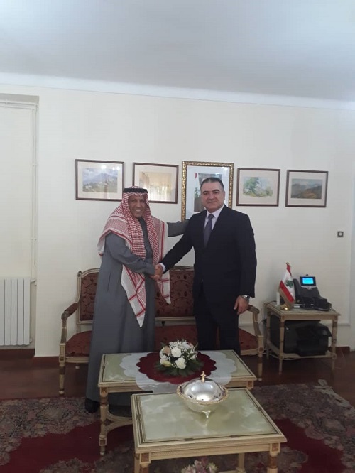 التقى الدكتور محمد محمود حسن،سفير لبنان في الجزائر،الأستاذعبد العزيز بن ابراهيم العميريني، سفير المملكة العربية السعودية في الجزائرالذي إستلم مهامه الديبلوماسية منذ 10 ايام ، وكان اللقاء مناسبةتم خلالها التباحث في مختلف السبل الآيلة الى تعزيز الروابط العربية البينية لا سيما توثيق الروابط بين الجزائر ولبنان والسعودية، كما تم إستعراض مسيرة العلاقات التاريخية للأخوة اللبنانية السعودية وكيفية العمل المشترك على تعميق تلك العلاقات بما يعود بالمنفعة على البلدين الشقيقين وذلك لما للبنان من مكانة مميزة لدى اشقائه العرب وبشكل محوري لدى العربية السعودية ".
