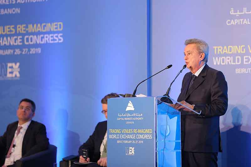 افتتح حاكم مصرف لبنان رياض سلامة المؤتمر الدولي السنوي الرابع عشر للبورصات العالمية "World Exchange Congress 2019" الذي استضافته بيروت في فندق فينيسيا، تحت عنوان "رؤية جديدة لأسواق التداول" Trading venues Re-imagined، وقد شكل منصة دولية جمعت ممثلين عن كبرى البورصات العالمية وهيئات الأسواق المالية وغرف المقاصة ومتخصصين في مجال التكنولوجيا الرقمية وفعاليات اقتصادية ومصرفية بارزة، بهدف مناقشة أحدث التقنيات والاتجاهات العالمية في الأسواق المالية.