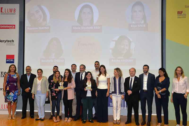 نظمت "الوكالة الجامعية للفرنكوفونية"، "بيريتيك"، "لوريان-لو-جور"، "لو كومارس دو لوفان" ومصرف "سوسييتيه جينيرال"، برعاية وزيرة الدولة لشؤون تمكين المرأة والشباب السيدة فيوليت خيرالله الصفدي، الحفل النهائي لمباراة المرأة الفرنكوفونية صاحبة الأعمال والتي ترمي منذ العام 2011 إلى دعم ريادة الأعمال لدى النساء وتثمينها، وذلك في قاعة فرنسوا باسيل في حرم الابتكار والرياضة التابع لجامعة القديس يوسف بيروت.