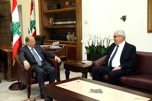 وطالب الوفد من رئيس الجمهورية رعايته للمنتدى الدولي الذي تعقده لجنة المبادرة في شهر تشرين الثاني 2017 في جامعة سيدة اللويزة.