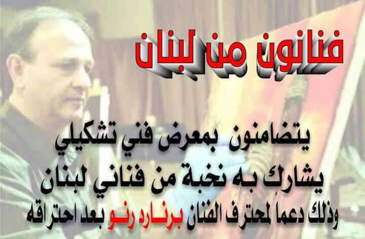 من أبسط واجباتي الإنسانية والأدبية والثقافية والإجتماعية والفنية أن أقف إلى جانب صديقي العزيز الفنان التشكيلي اللبناني العالمي الأستاذ برنارد رنو للتضامن معه بعد احتراق محترفه الفني أخيرا في منطقة الجميزة البيروتية العريقة. شاكرا ومثمنا جهود كل زملائه الفنانين والفنانات الذين ساهموا في دعم مسيرة الفنان اللبناني العالمي برنارد رنو على مدى عقود من الزمن ، من خلال تنظيمهم لهذا المعرض الفني التشكيلي التضامني الذي استضافته قاعة المركز الثقافي لبلدية سن الفيل .