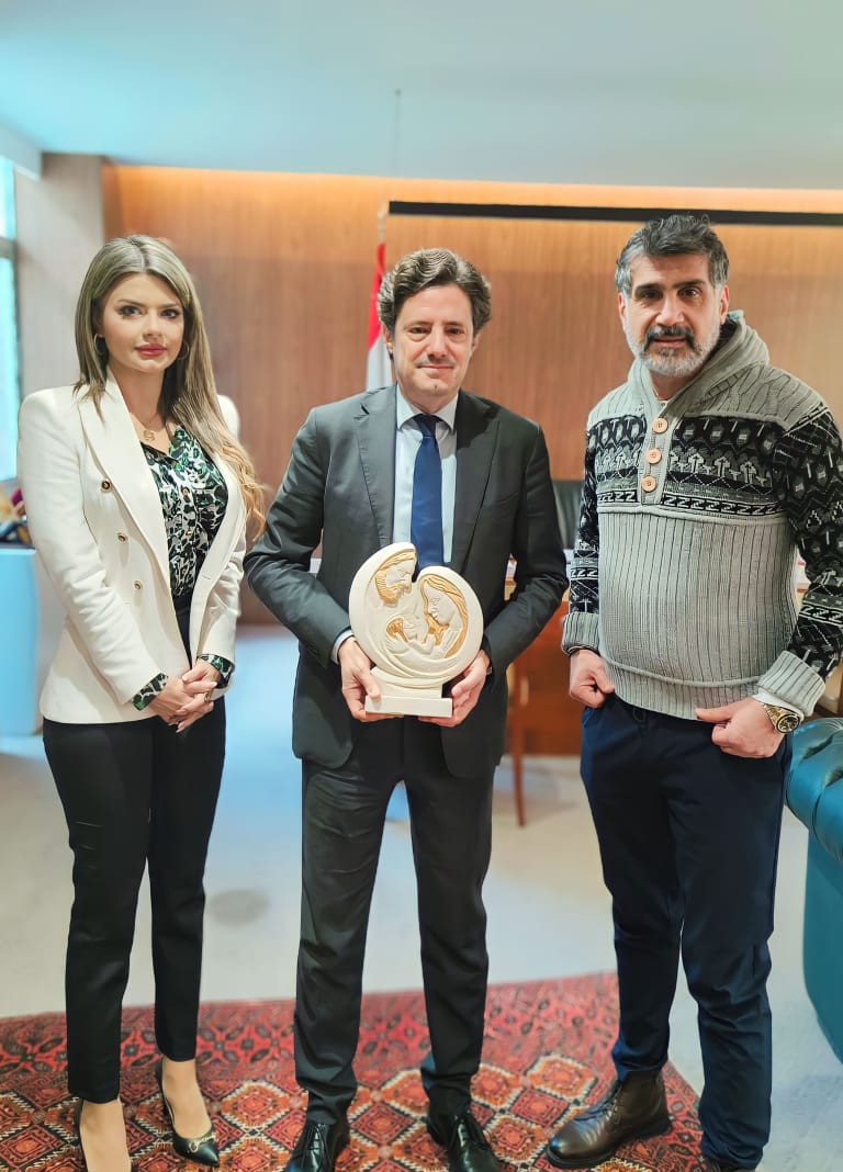 في إطار تقدير الدور الحيوي لوزير الإعلام المهندس زياد مكاري وعربون شكر على تكريمه لمحطة Mariam TV قدم مدير البرامج لمحطة Mariam TV الإعلامي جورج معلولي والإعلامية ماري العلم حبشي منحوتة تجسد العائلة المقدسة لمعاليه.