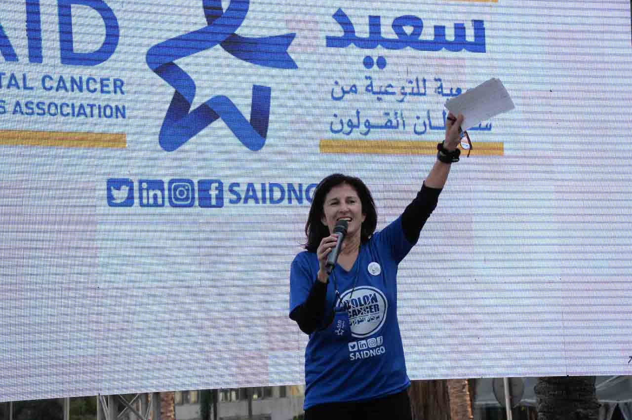 شكرت رئيسة جمعية "SAID" السيدة هنا نمر التي أسست الجمعية بعد وفاة زوجها سسعيد بسرطان القولون كل من دعم هذا الحدث وخصوصاً وزير الصحة الدكتور فراس الأبيض على دعمه الكامل والصادق، وقالت: "سرطان القولون يصيب ١ من عشرين ويُعتبر ثاني سرطان مشترك مسبب للوفاة بين الرجال والنساء، لكنه من أنواع السرطانات القليلة التي بإمكاننا منعها أو ايقافها بالكشف المبكر، لذا إذا كان عمركم بين ٤٥ و ٧٥ اجروا فحص F.I.T. سنوياً، وإن شعرتم بأي عارض استشيروا الطبيب فوراً". وأنهت: "علينا كسر التابو وألا نخشى الكلام عن هذا المرض لأن في كل عائلة مصاب بنوع من أنواع السرطان".