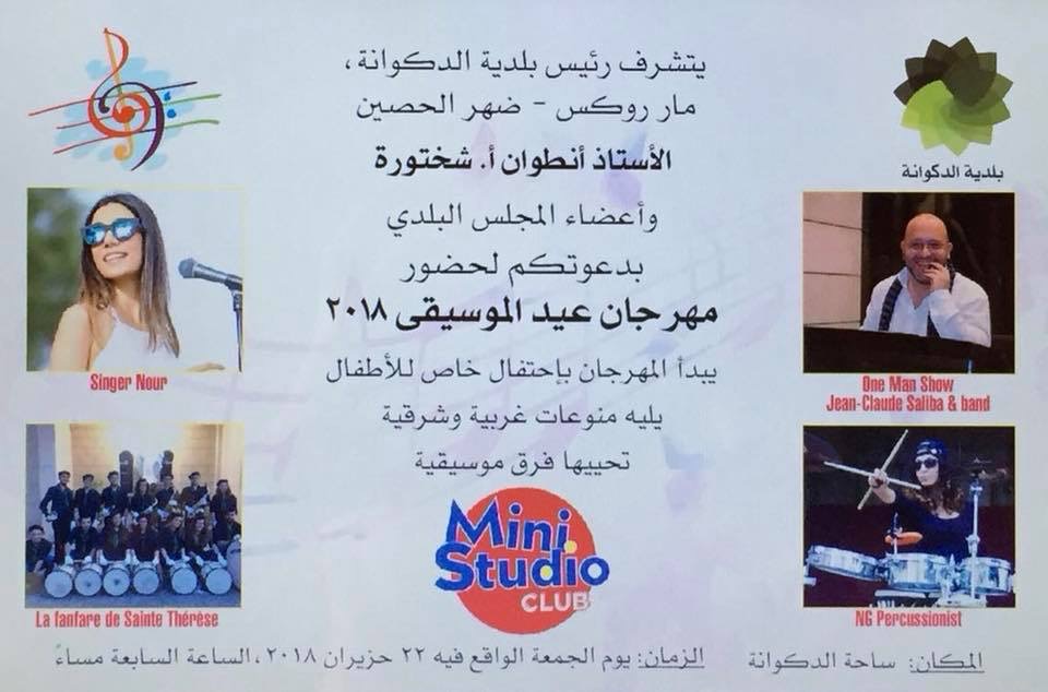 أنتم على موعد مع مهرجان عيد الموسيقى 2018 الذي يقيمه رئيس بلدية الدكوانة انطوان شختورة وأعضاء المجلس البلدي "ما تأللو خصية كونوا كتار ولاقونا" مع الدكوانة عيشوا الصيف أحلى.