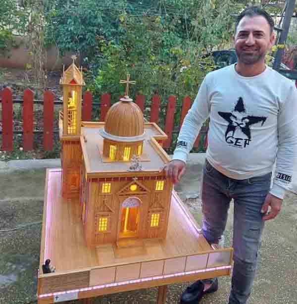 فلم يجد أنسب من بناء مجسم لكنيسة مار جرجس الأثرية التي هي كنيسة البلدة العجائبية، والتي تجمع أبناءها على الذبيحة الالهية يوم الاحد والاعياد من كل حدب وصوب.