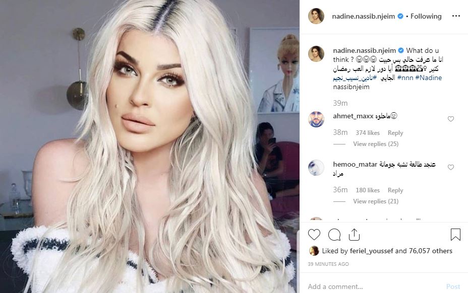 فاجأت الممثلة نادين نسيب نجيم جمهورها؛ حيث غيّرت لون شعرها إلى الأشقر الذي يعدُّ من أجرأ الألوان وتظهر به للمرة الأولى، ما منحها إطلالة مختلفة كثيرًا وغيّر من شكلها تمامًا.