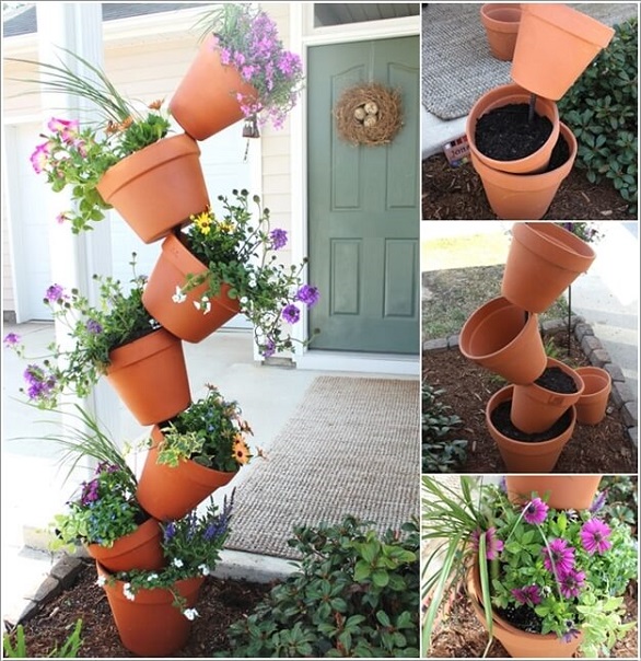 3- تزيين الحديقة المنزلية، عن طريق الجمع بين مجموعة من أصص النباتات بطريقة فنية مميزة.