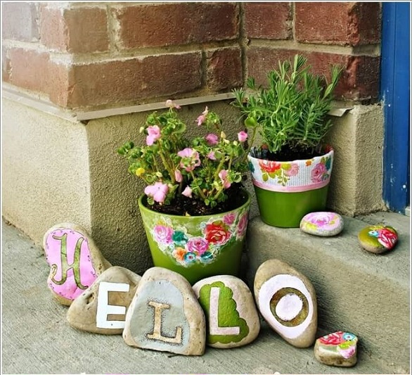 4- ديكور للحديقة عن طريق استخدام مجموعة من الحجارة الملونة.